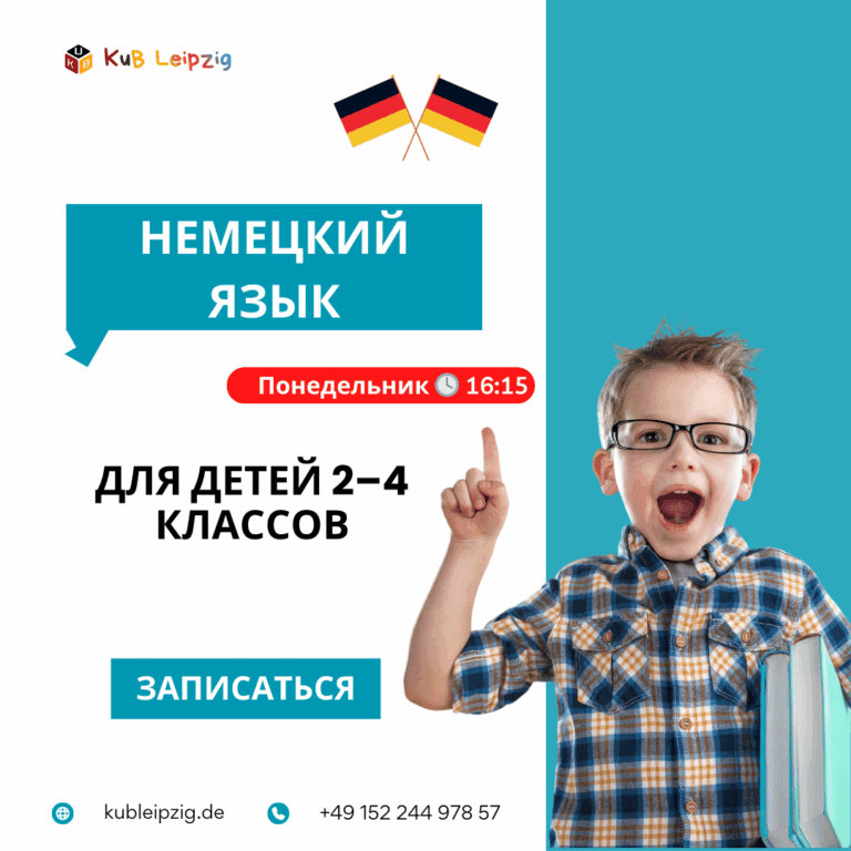 Хотите говорить по-немецки свободнее и увереннее?Приглашаем детей, подростков и взрослых на наш тёплый и дружелюбный разговорный клуб! Мы тренируем живую речь, учим понимать собеседника, расширяем словарный запас и снимаем языковой барьер. 🗓 Когда встречаемся 📅 Каждую субботу:🕘 09:00–10:00 — онлайн, от 12 лет🕚 11:45–12:30 — дети 6–11 лет 📍 Eisenbahnstr. 99, 04315 Leipzig📲 +49 152 […]