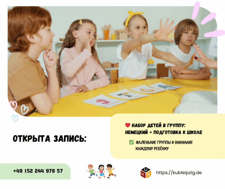 👶📚 Приглашаем детей в подготовительную группу по немецкому языку.Учимся понимать, говорить и готовимся к школе. 🕒 Занятия проходят по пн, вт, ср в 16:30 📲 Запись: 0152 244 97857 (Leipzig)