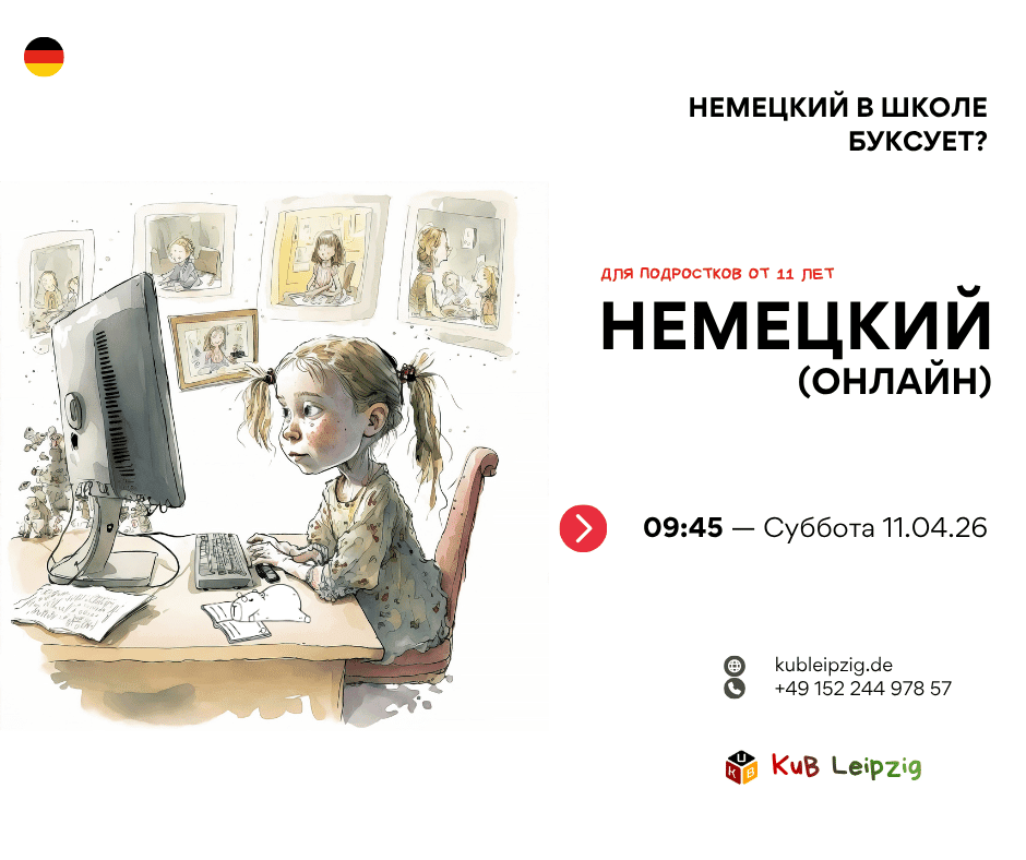 В детском центре KuB Leipzig открыт набор на немецкий для подростков от 11 лет — онлайн.
