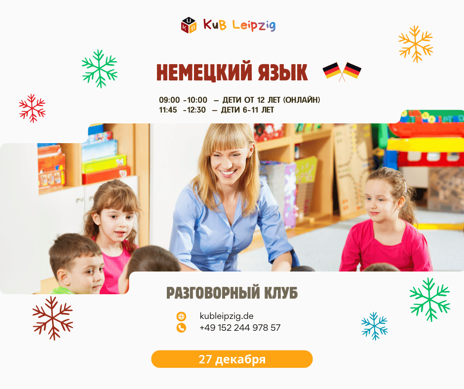 Приглашаем детей, подростков и взрослых на занятия разговорного клуба немецкого языка.
