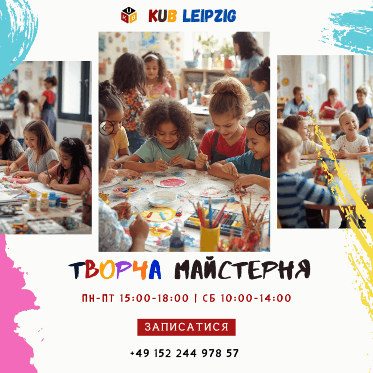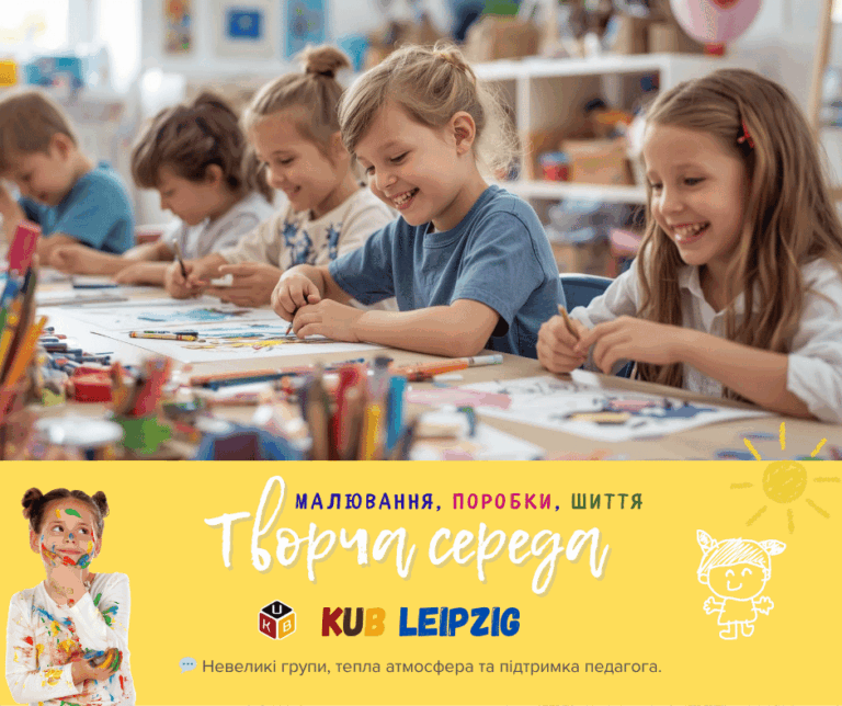 Запрошуємо дітей на заняття з малювання, рукоділля та шиття 🎨✂️На уроках діти розвивають фантазію, дрібну моторику та впевненість у собі — створюючи власні шедеври. 🕓 Понеділок — П’ятниця: 15:00–18:00🕙 Субота: 10:00–14:00 📍 Eisenbahnstr. 99, 04315 Leipzig📲 +49 152 244 978 57 (WhatsApp, Telegram)🌐 kubleipzig.de/uk/zapis-na-zanyattya/— запис через форму на сайті або за телефоном.