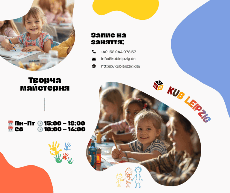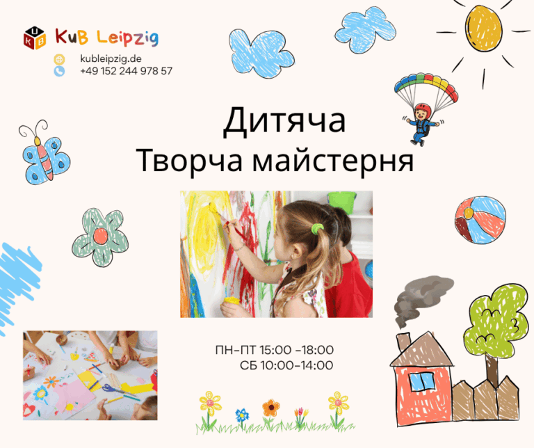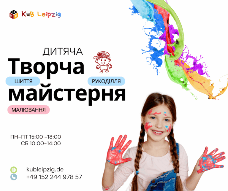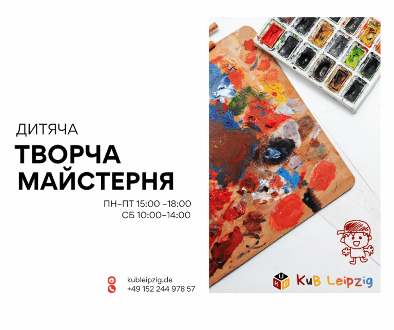 Хочете, щоб ваша дитина відкривала нове, розвивала уяву та впевнено створювала свої перші маленькі шедеври?Запрошуємо до нашої творчої майстерні — місця, де ідеї оживають, а настрій стає яскравішим! Майструємо, малюємо, пробуємо різні матеріали та техніки.А головне — створюємо атмосферу, у якій кожна дитина почувається вільно та натхненно. 📅 Пн–Пт: 15:00–18:00📅 Сб: 10:00–14:00📍 Eisenbahnstr. 99, 04315 […]