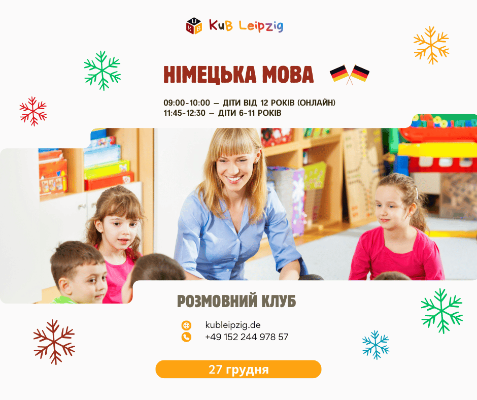 Запрошуємо дітей, підлітків та дорослих на заняття розмовного клубу німецької мови.