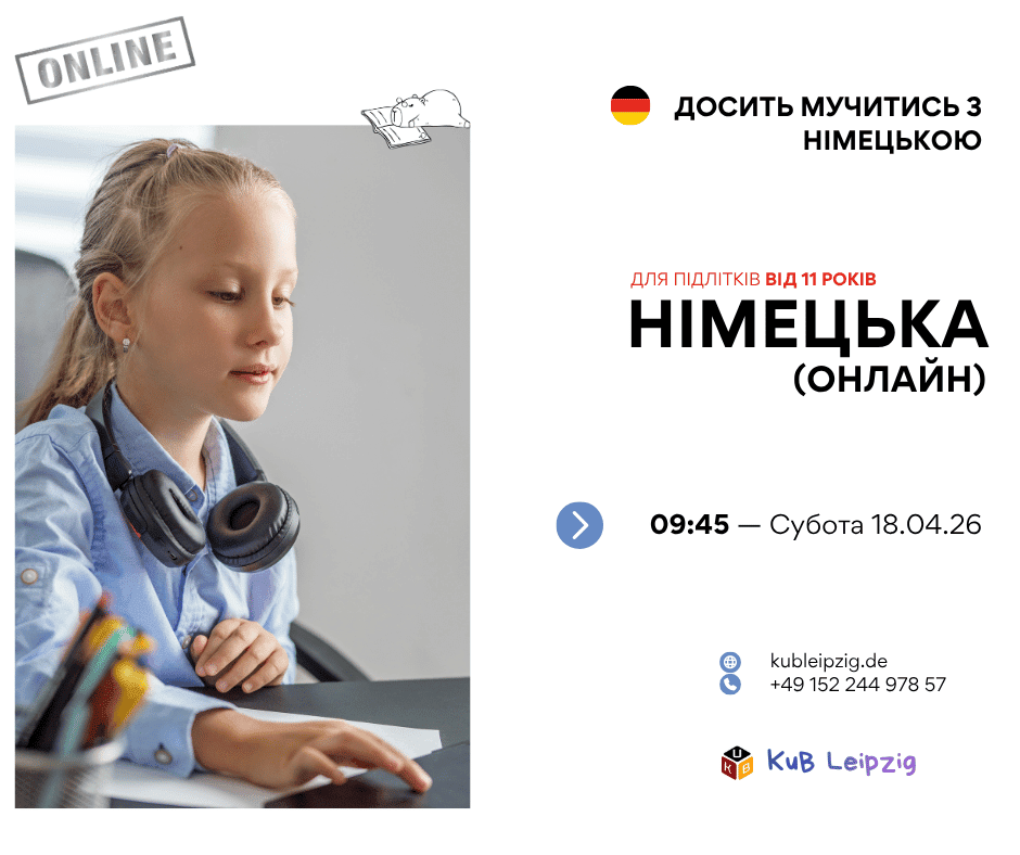 Щосуботи о 9:45 ми збираємось онлайн і розбираємось з німецькою. Спокійно, зрозуміло, без стресу.
